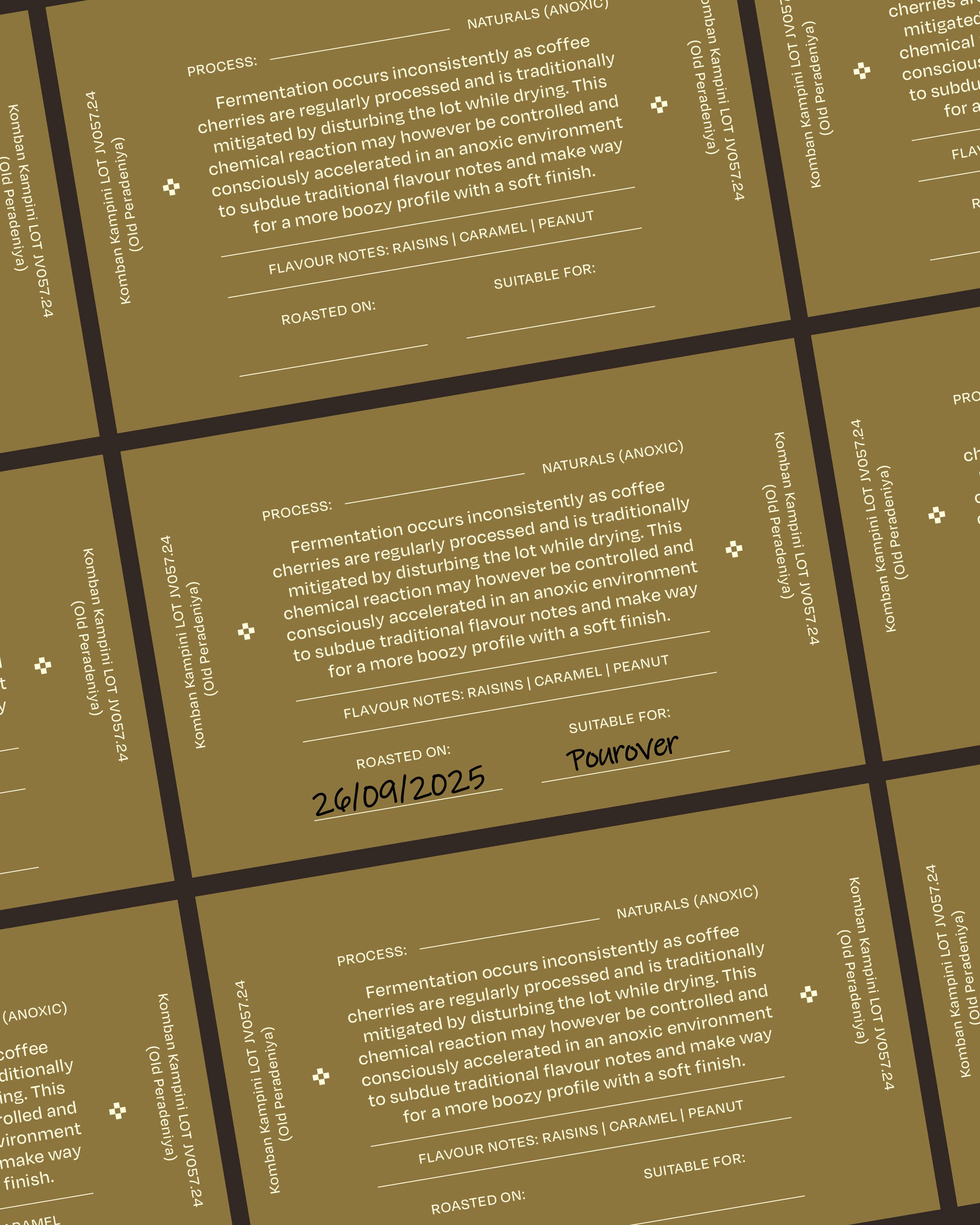("Naturals", or "Cherry" as it is referred to by most traders, describes coffee that is dried with its outer skin intact. "Anoxic" describes the atmosphere of the tank where our coffee is fermented.)