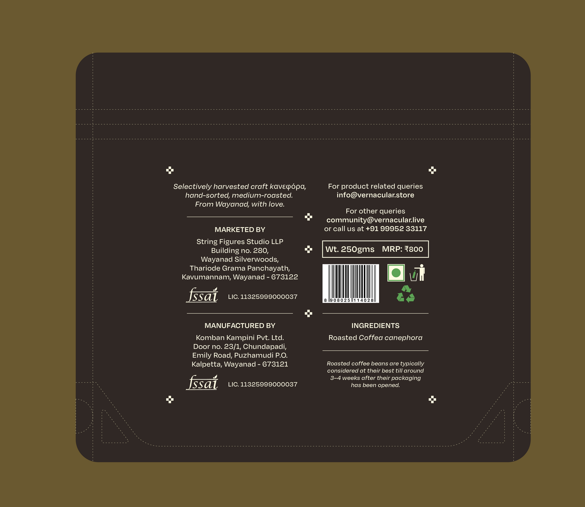 Selectively harvested, shade-dried and hand sorted at Chundapadi-Moovetil*, Wayanad (750-810 MASL). Courtesy of Komban Kampini.